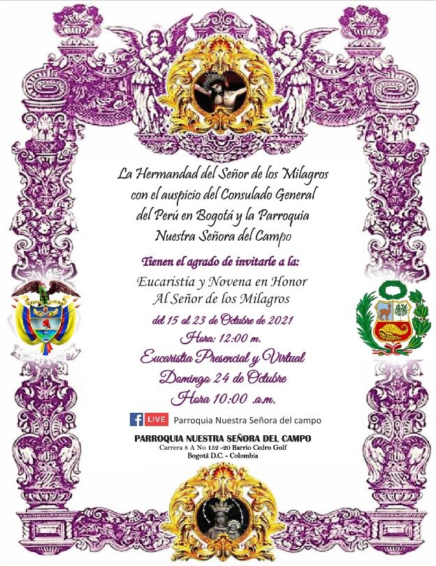 Programación 2021Sin categoría / By churchil La comunidad COLOMBIA, le invita a la celebración de Nuestro Señor de los Milagros